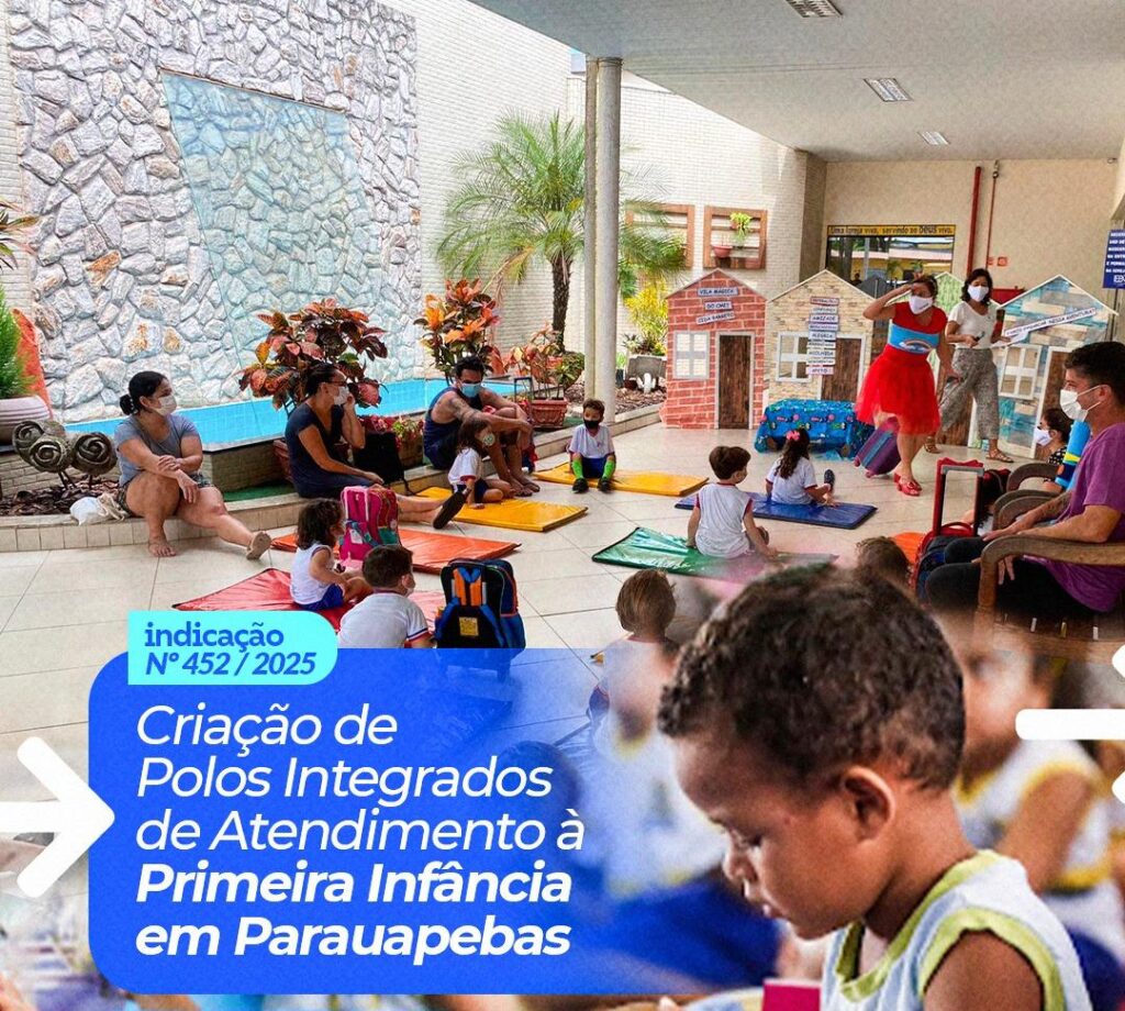 O vereador Michel Carteiro apresentou, na Câmara Municipal de Parauapebas, a Indicação nº 452/2025, que sugere ao Executivo Municipal a criação de Polos Integrados de Atendimento à Primeira Infância. A proposta prevê unidades estruturadas para oferecer serviços multidisciplinares voltados a crianças de 0 a 6 anos, com atendimento nas áreas de saúde, desenvolvimento infantil e apoio às famílias.